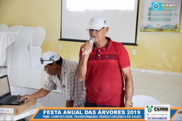 Por ocasião da abertura da programação, o secretário do Meio Ambiente de Cariré, Adauto Eleotério Araújo falou à plenária sobre "os objetivos da programação da Festa Anual das Árvores 2019, que é promover a importância da preservação das árvores, incentivando a proteção do meio ambiente com atitudes que trazem benefícios à natureza, como planar uma árvore ou revitalizar algum jardim que não esteja bem cuidado. Estimular a reflexão sobre as consequências do desmatamento e da expansão da poluição, bem como conscientizar a população a destinar de modo ambiente correto os resíduos sólidos orgânicos gerados nas atividades relacionadas ao preparo dos alimentos, consumo de refeições, limpeza dos utensílios utilizados, varrição, capinas e podas diversas", enfatizou.
